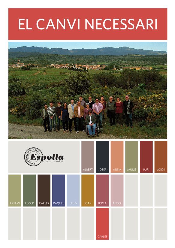 Tots junts, els que estimem Espolla, farem anar endavant el poble i el més important, la gent. Uns més, altres menys però tots aportant el nostre granet de sorra: els qui tenen al dni que és seu lloc de naixement, els que hi tenen casa, els que hi viuen en el dia a dia o els caps setmana, Compromesos, Ciu, dretes, esquerres, del mig, d'una banda i l'altra.