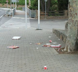 2. Això ja fa temps que dura, no és la primer vegada que trenquen la font, les faroles, la quantitat de porqueria, les pintades, el soroll.... en fi, són tantes les bestiesses.Crec que tots hem sigut joves i qui més qui meys n'ha fet alguna però ho d'avui en dia..s'ha perdut el RESPECTE a les persones i mobiliari urbà, és UNA VERGONYA!!!